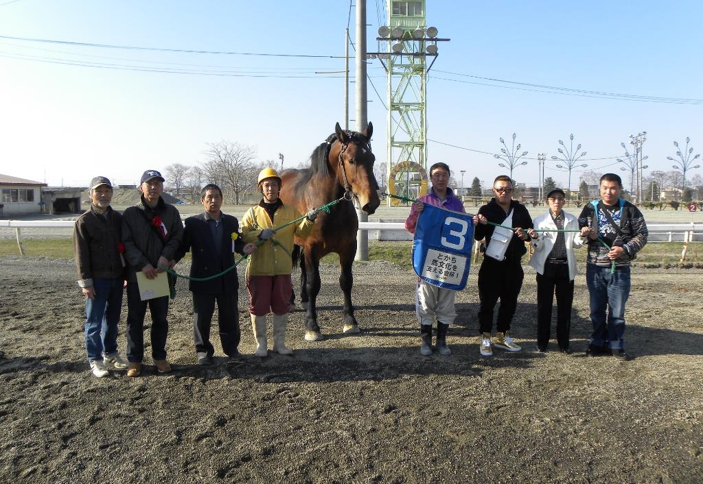 2014年6月17日 umabunka 4月20日 前夜祭オークション売上金でレース協賛 3月22日に「ばんえい記念前夜祭」を開催いたしましたが、その中で実施したチャリティーオークションの売上金で、本年度もレース協賛をいたしました。 今回のオークション売上金は34,000円でしたので、当会から6,000円を追加し、4月20日の第2レース、第3レースを個人協賛(1レース協賛金2万円)いたしました。 表彰式では、当会会員の皆さんに協賛金の授与をお手伝いいただきましたが、あこがれの騎手さんたちと会話を交わすなど、楽しい一時をお過ごしいただきました。 とかち馬文化を支える会杯1(4月20日第2レース) とかち馬文化を支える会杯2(4月20日第3レース)