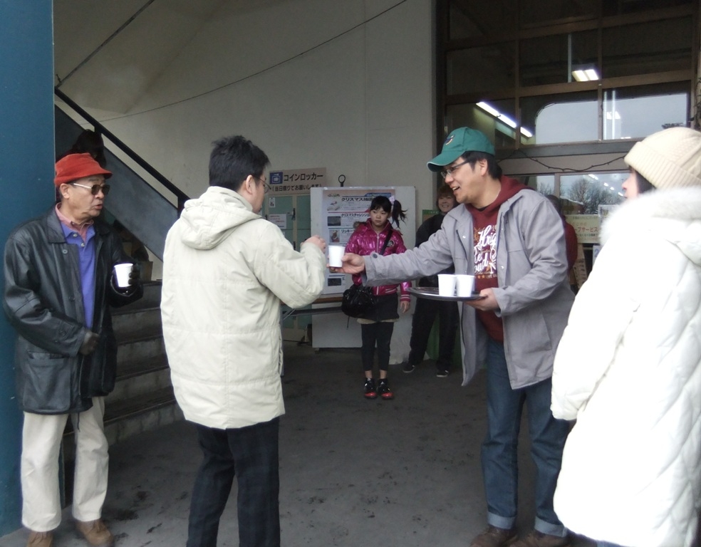 毎年、当会ではクリスマス時期、帯広競馬場でクリスマス・イベントを実施していますが、今年は、若干、スタイルを変えて、来場者された方に温かいスープを配りしました。